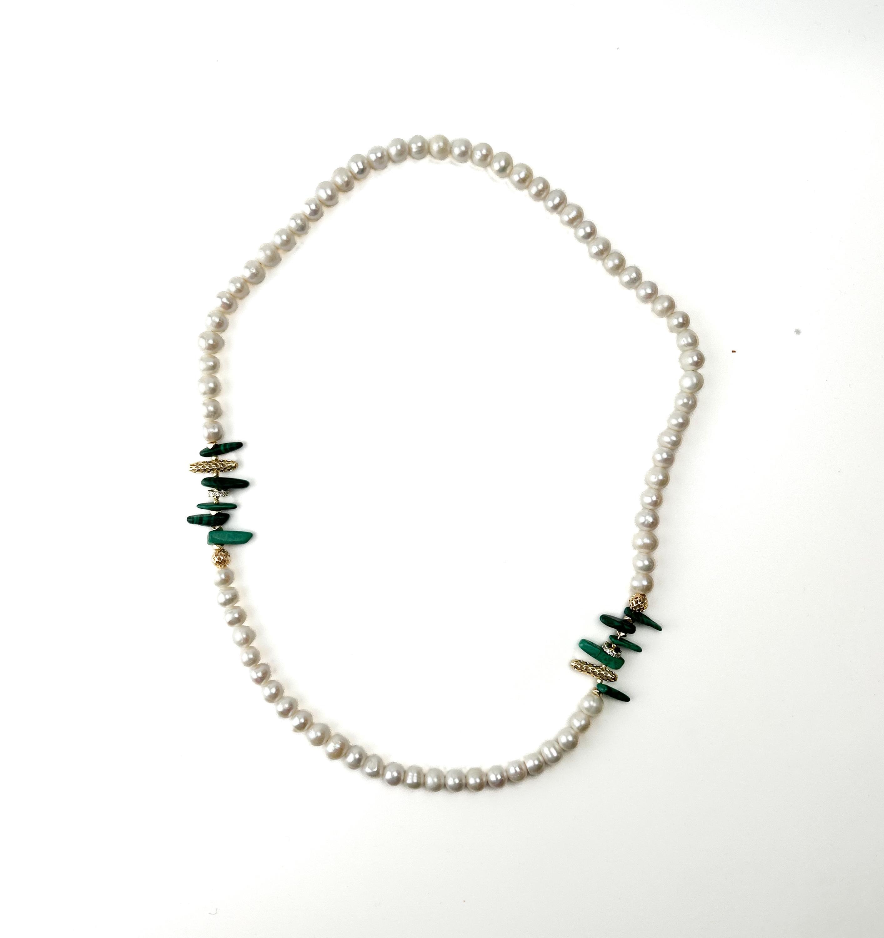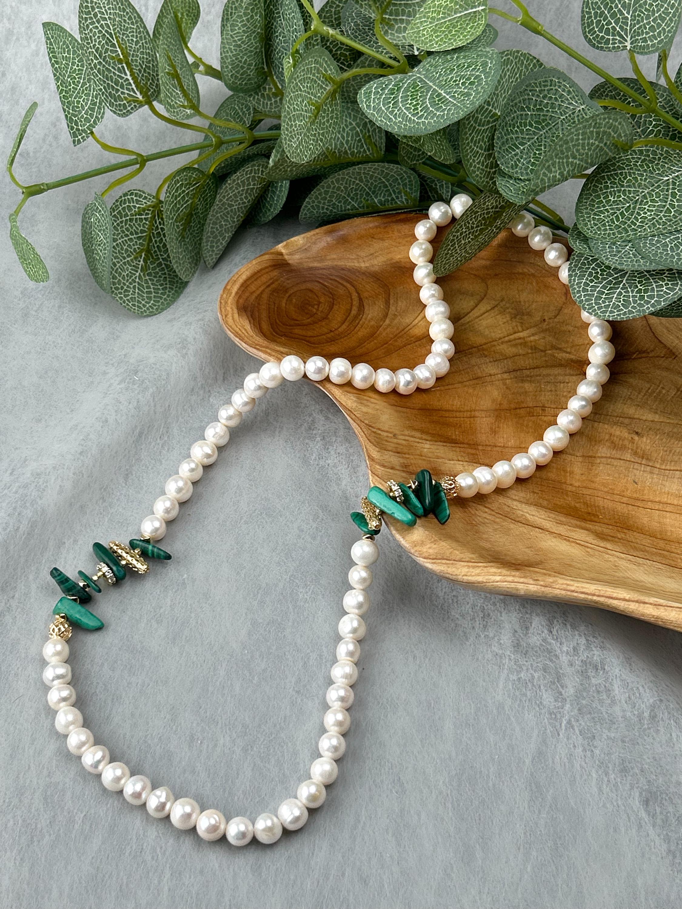💎 Made with genuine green malachite beads, freshwater pearls, and gold-plated accents