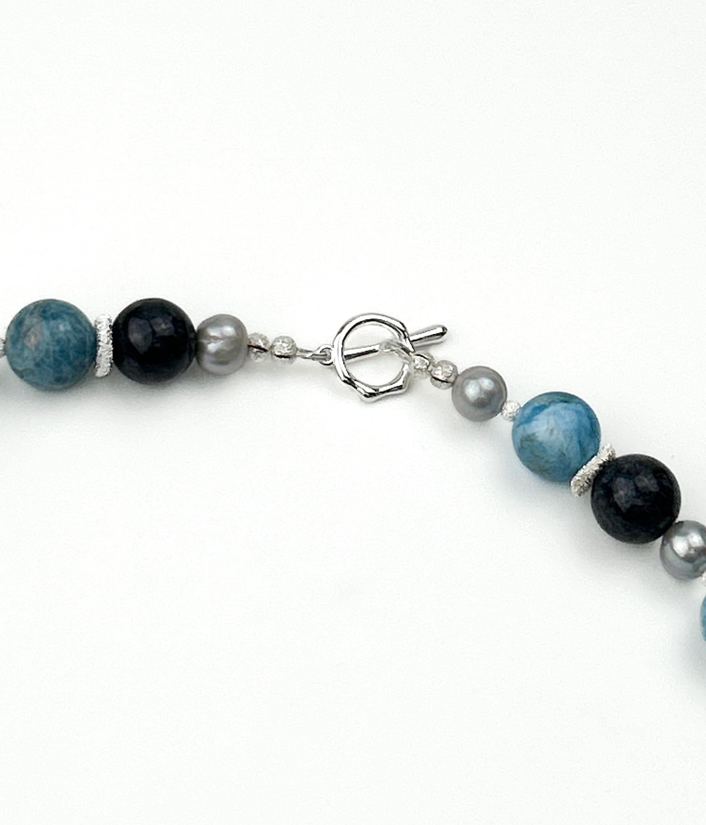 💎 Natural Gemstone Combination: Crafted with teal blue apatite, dark grey jade, and elegant grey pearls
