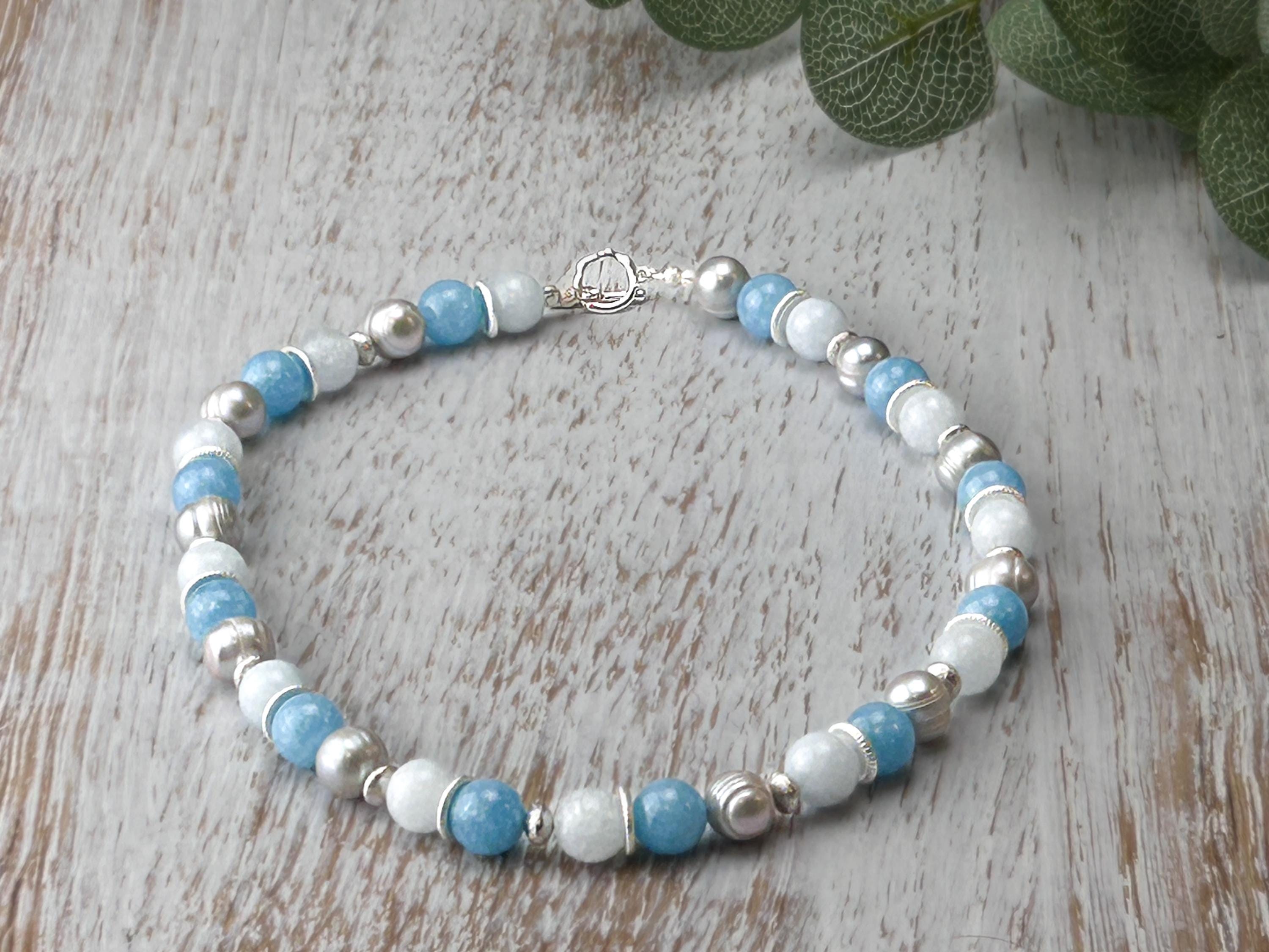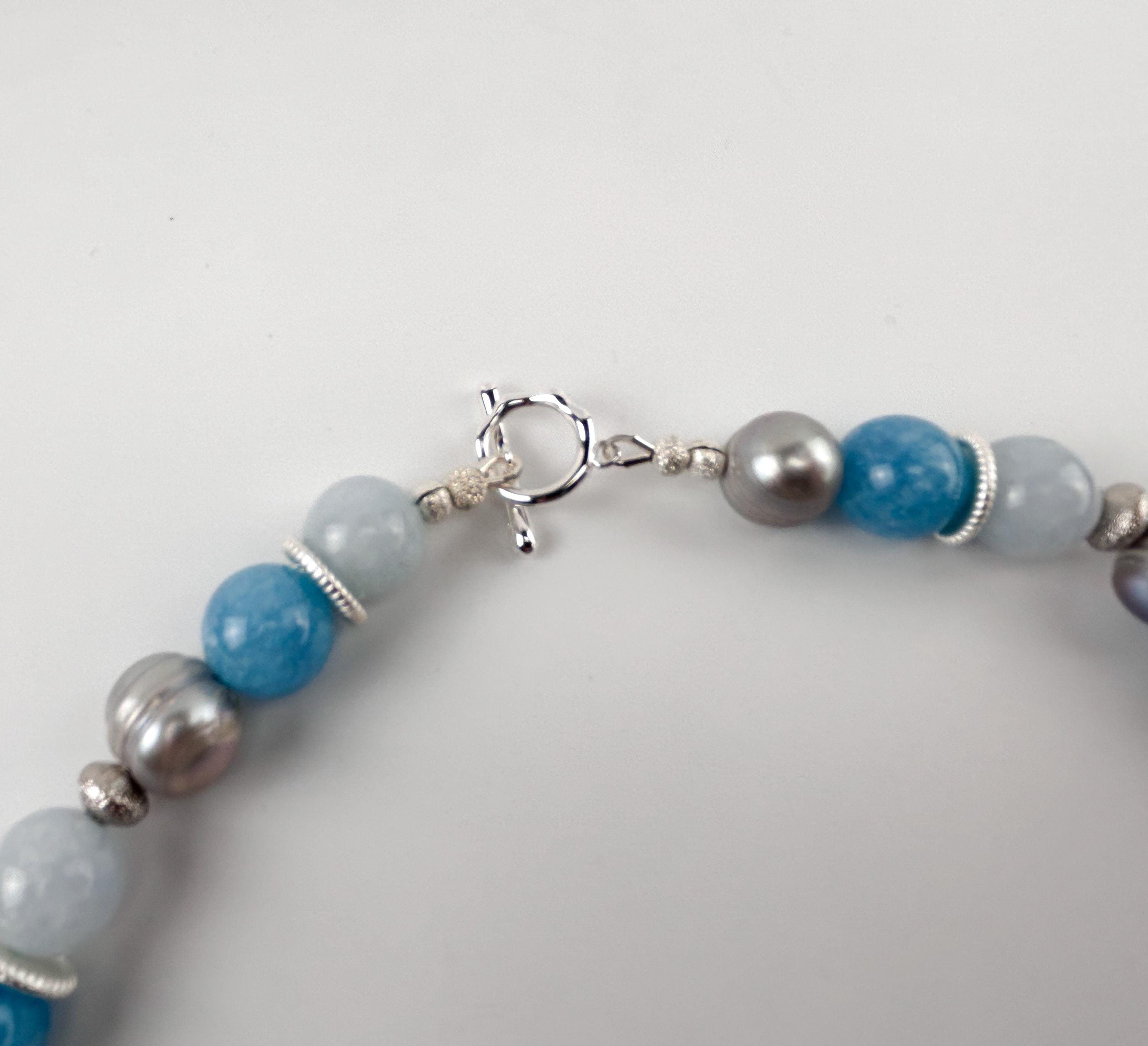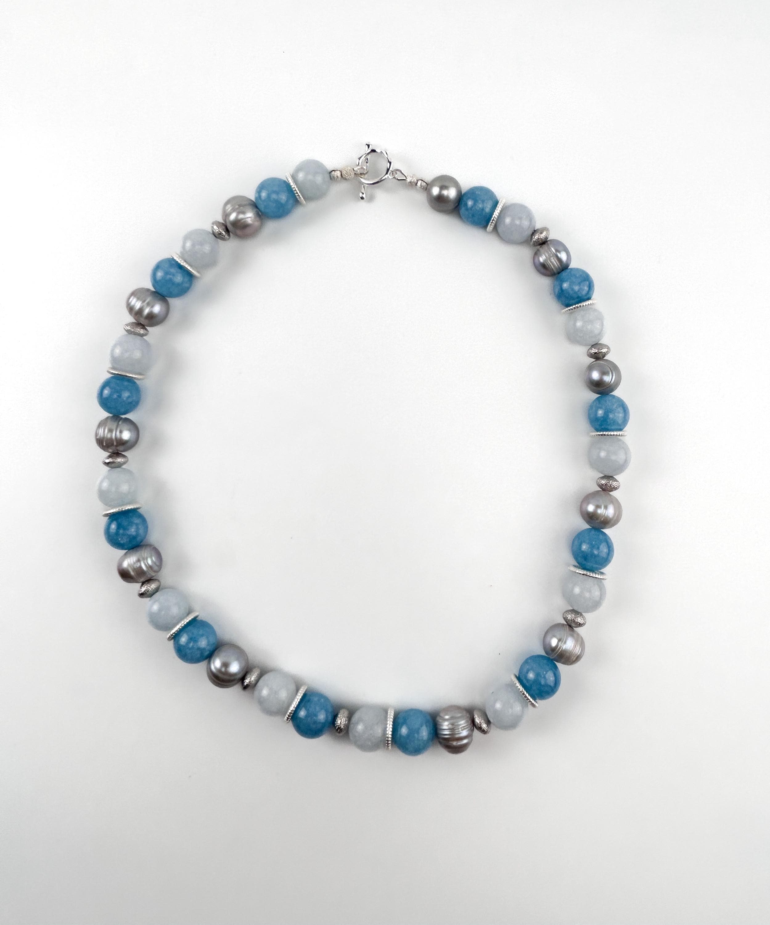 💎 Made with genuine blue quartz in two complementary shades and natural grey pearls