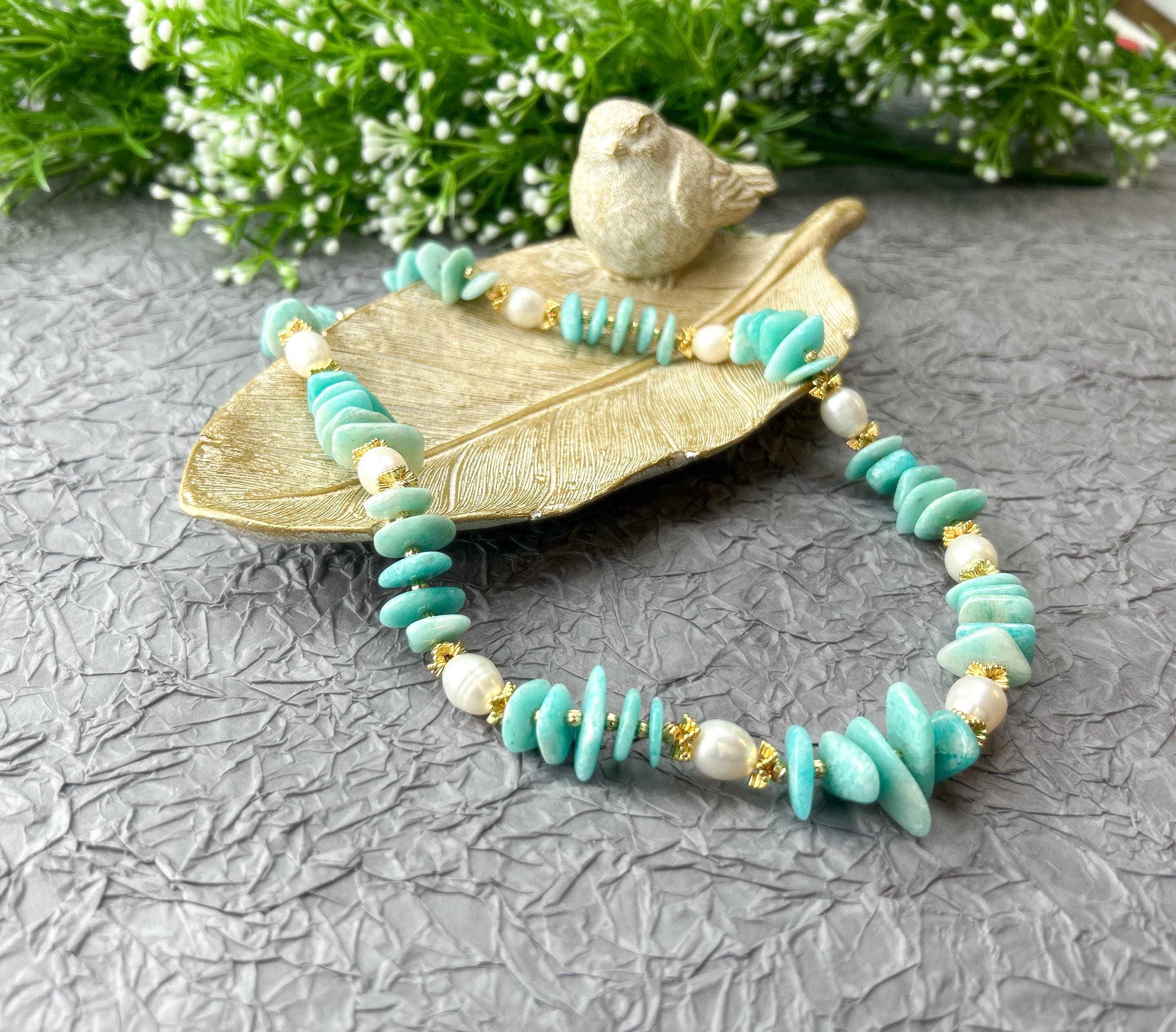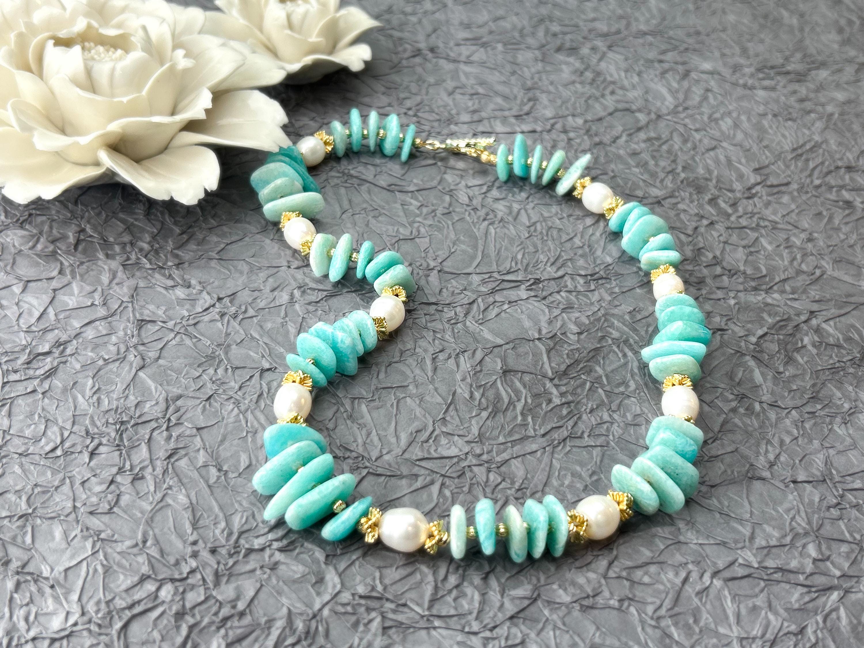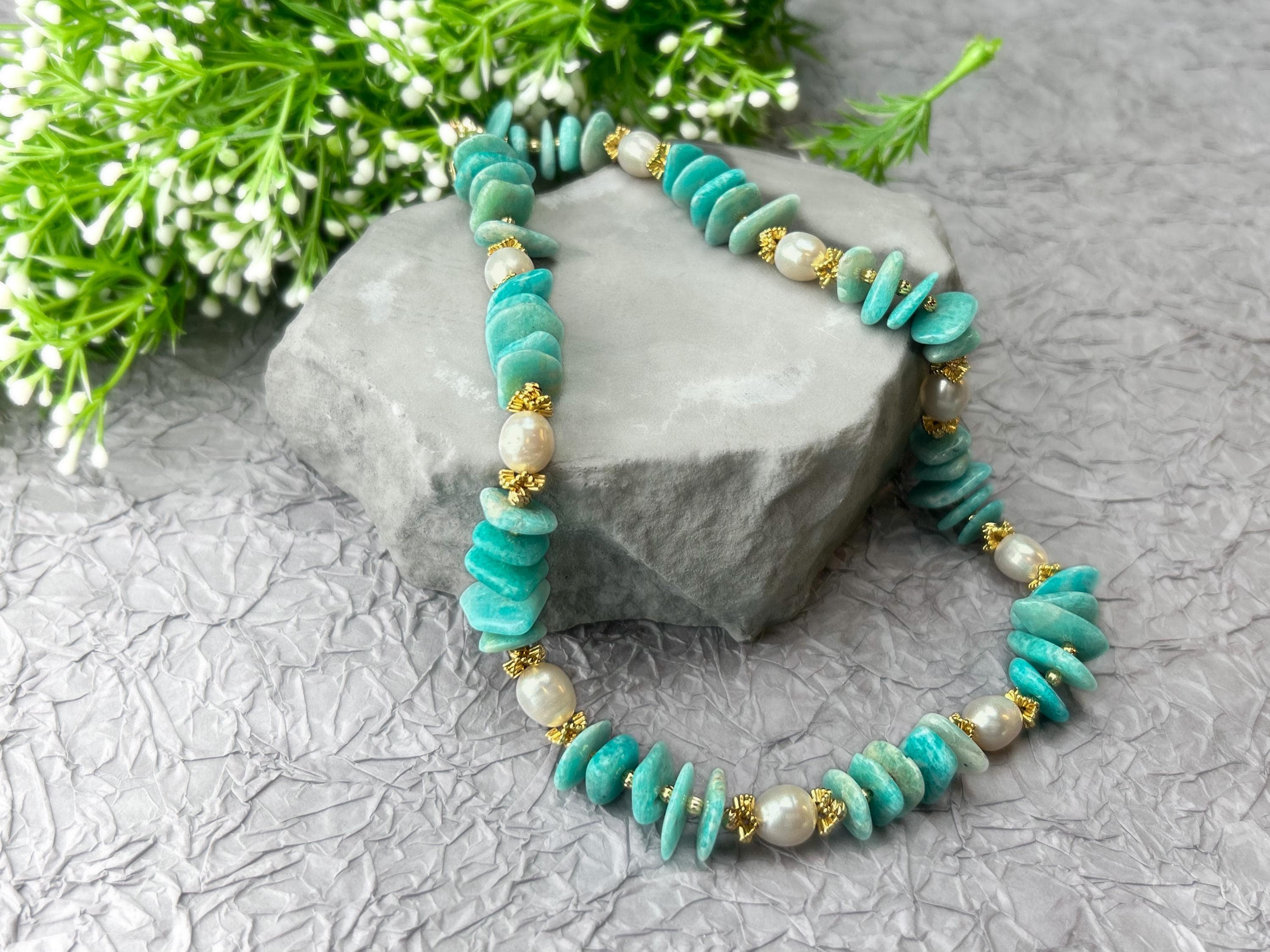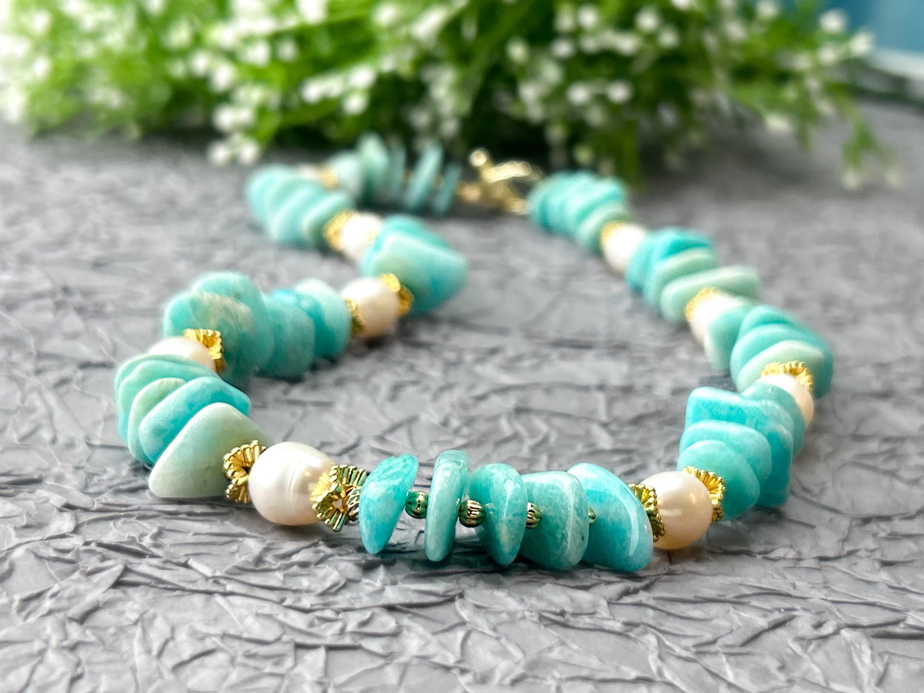 💎 Made with natural irregular amazonite stones and freshwater pearls