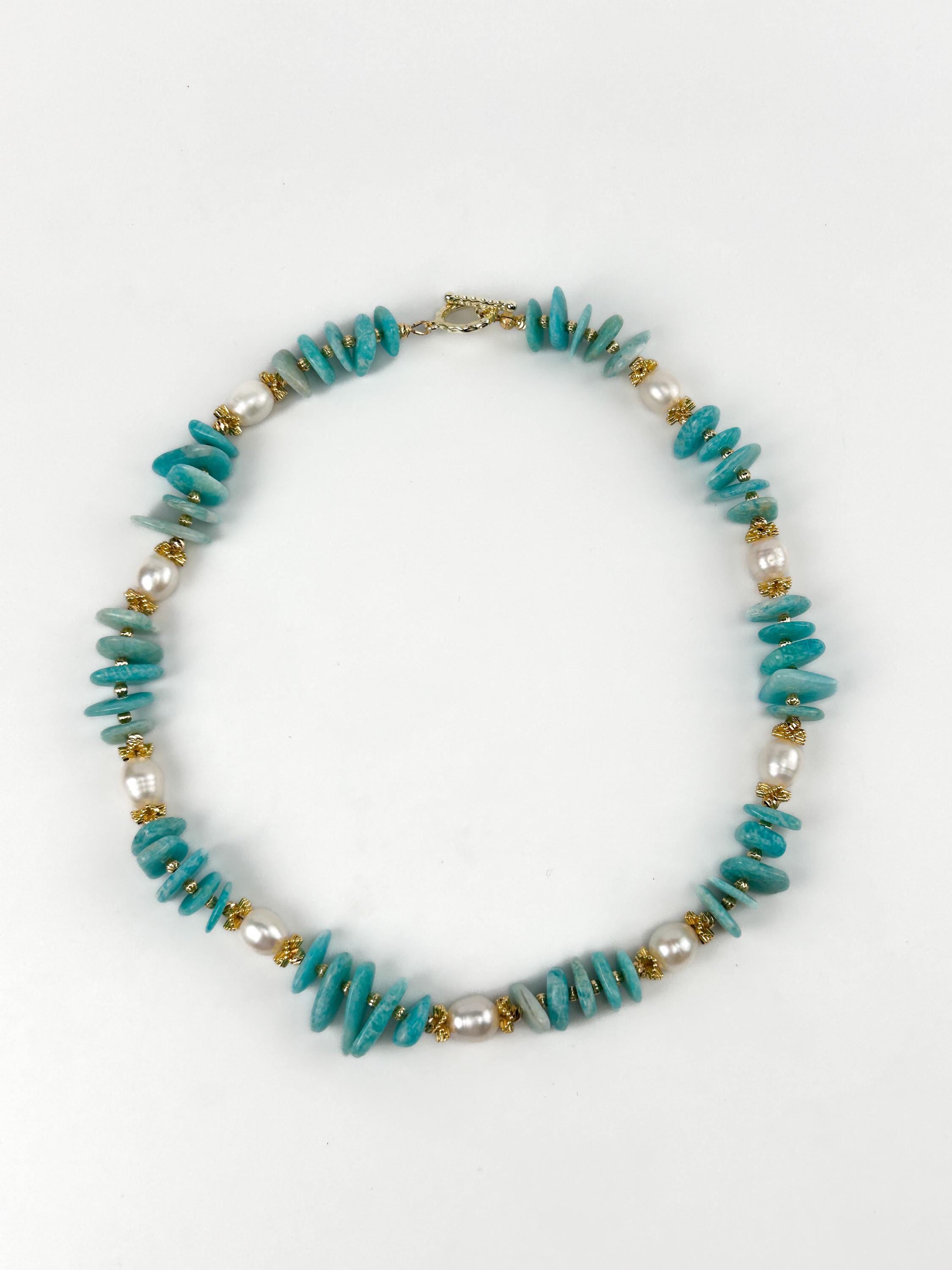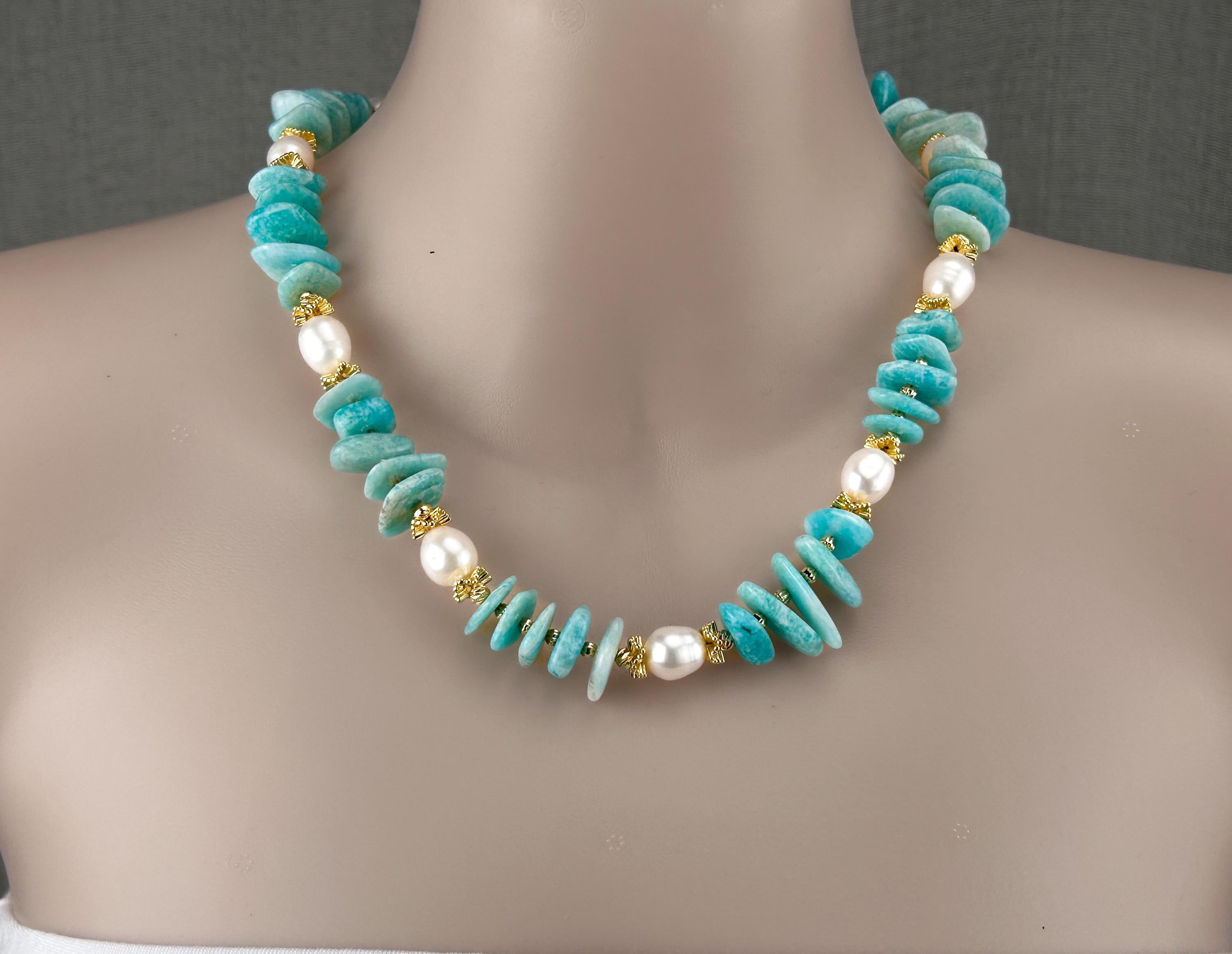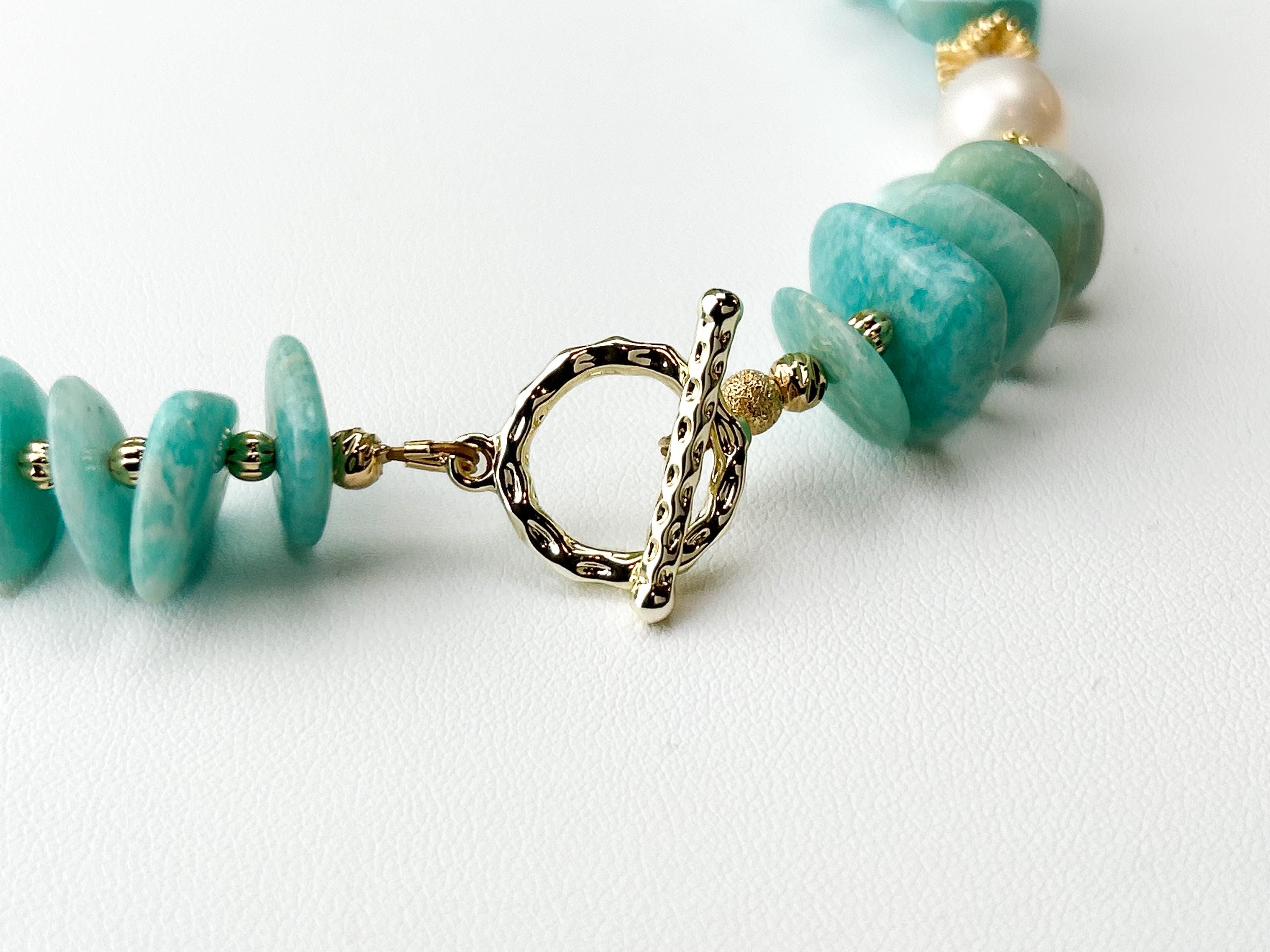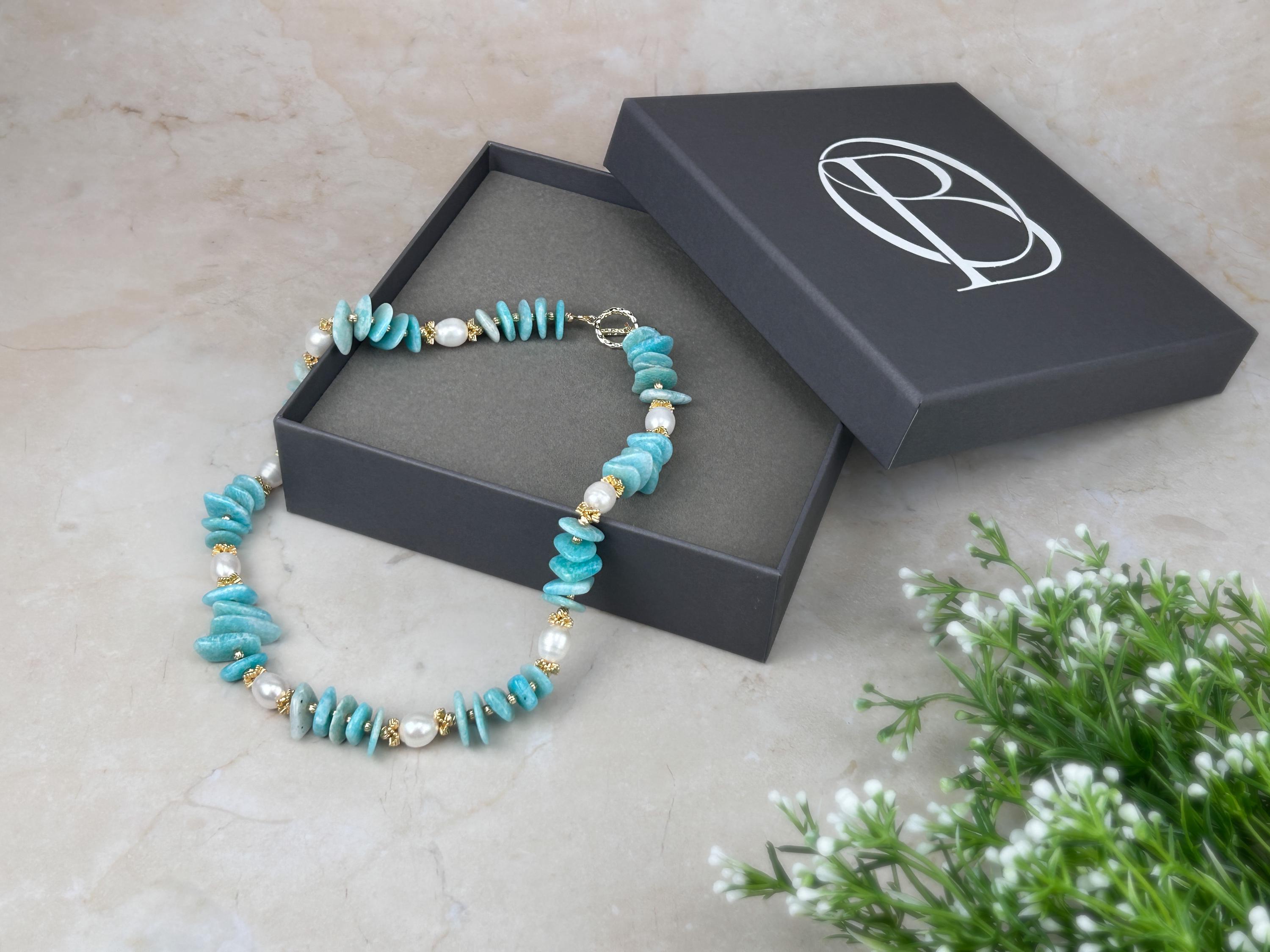 💎 Made with natural irregular amazonite stones and freshwater pearls