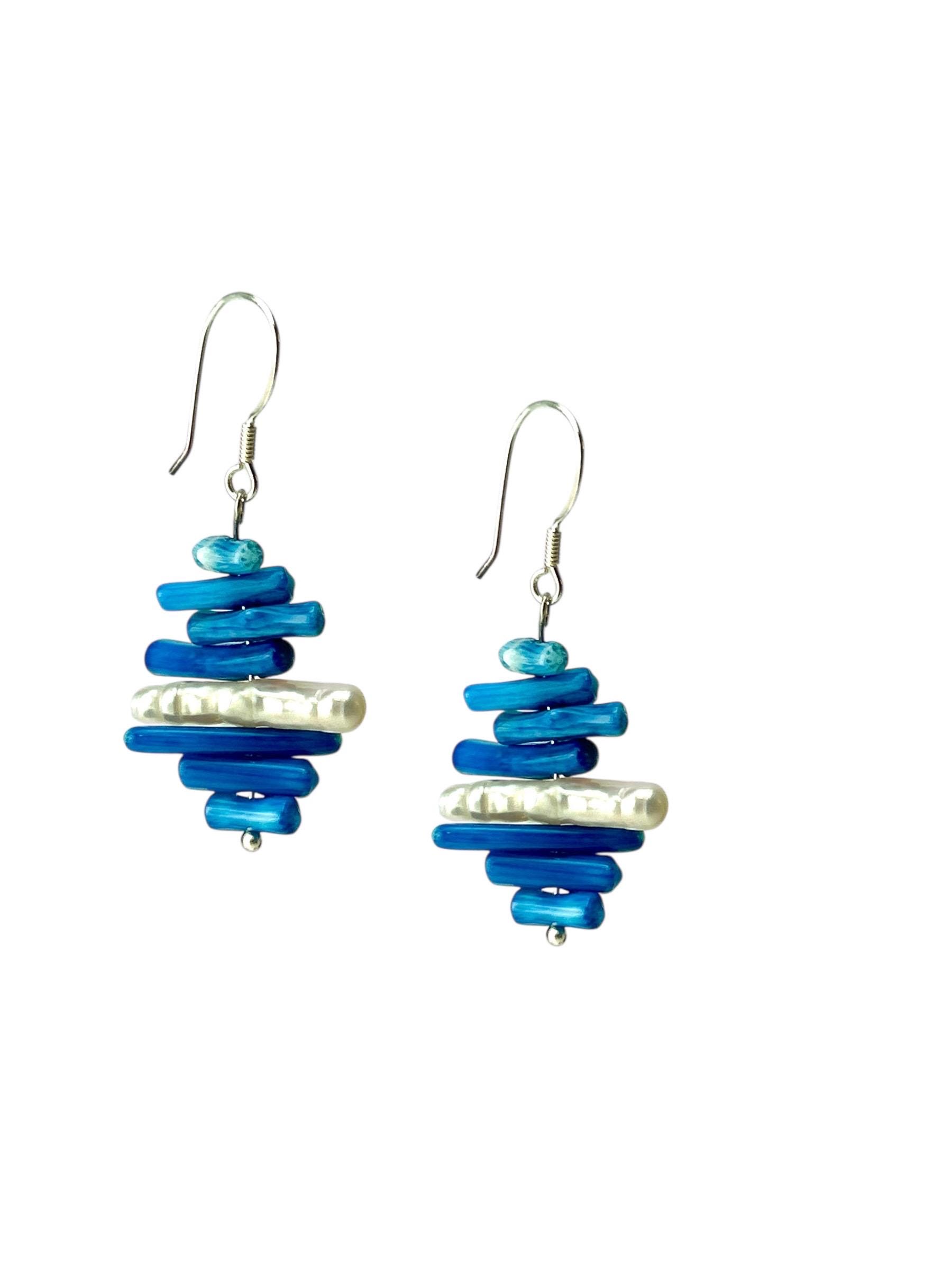 Channel the beauty of the sea 🌊 with these stunning dangle earrings handcrafted from natural blue coral branch beads and lustrous Biwa pearls. Each piece captures the organic charm of ocean treasures, creating an elegant boho accessory that’s both unique and timeless. The sterling silver hooks ensure a comfortable, hypoallergenic fit — perfect for everyday wear or a sophisticated seaside-inspired look.