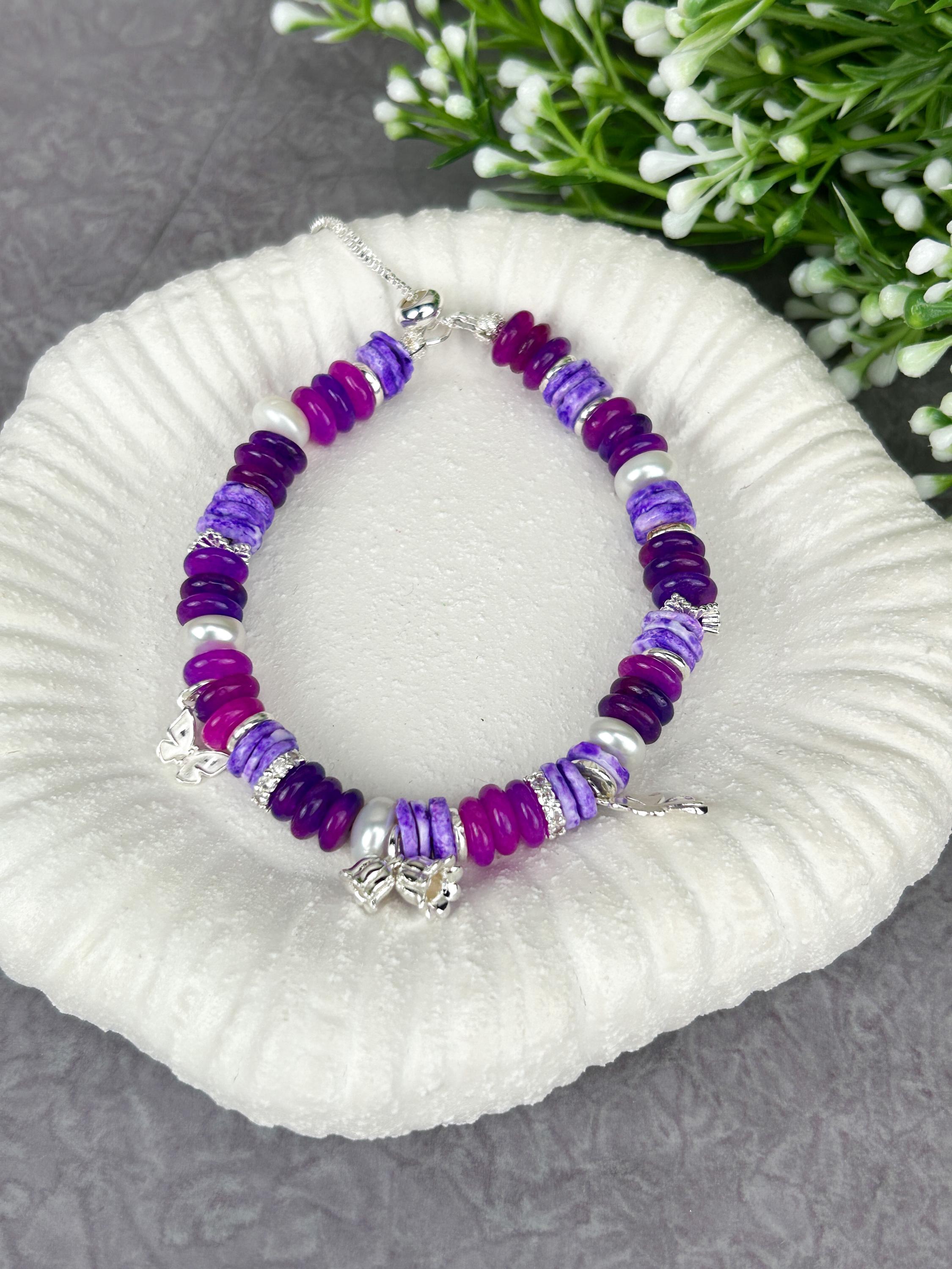 🌿 Crafted with unique gemstone elements including rich purple sugilite and luminous freshwater pearls